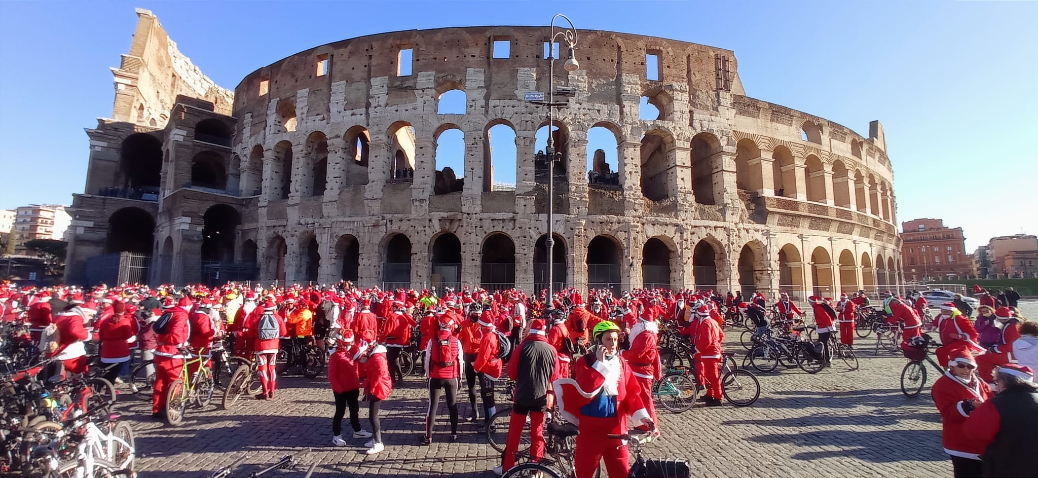 Torna la Pedalata dei Babbo Natale per le Case di Peter Pan, l’evento solidale più bello e colorato dell’anno. L’appuntamento per questa dodicesima edizione è al Colosseo domenica 17 dicembre alle ore 09.00 con partenza prevista alle 09.30. Migliaia di babbo natale percorreranno le strade di Roma in bicicletta in una sfilata colorata e festosa fino a raggiungere la Grande Casa di Peter Pan a Trastevere. Qui ci sarà un abbraccio simbolico con gli ospiti della Grande Casa e i volontari dell’associazione e la consegna delle donazioni che aiuteranno Peter Pan ad accogliere tanti bambini malati di cancro in cura a Roma.