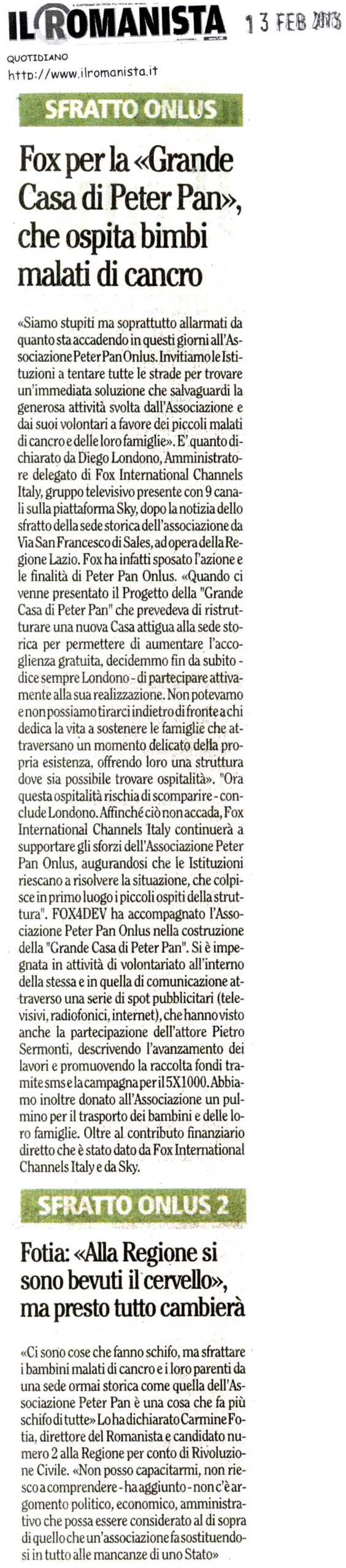 IL ROMANISTA “FOX per la Grande Casa di Peter Pan”