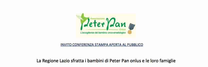 Peter Pan ha sempre pagato gli affitti all’ente regionale e non ha mai ricevuto alcun finanziamento da parte di enti pubblici. “La chiusura della casa priverĆ della nostra assistenza gratuita centinaia di bambini e le loro famiglie”.
