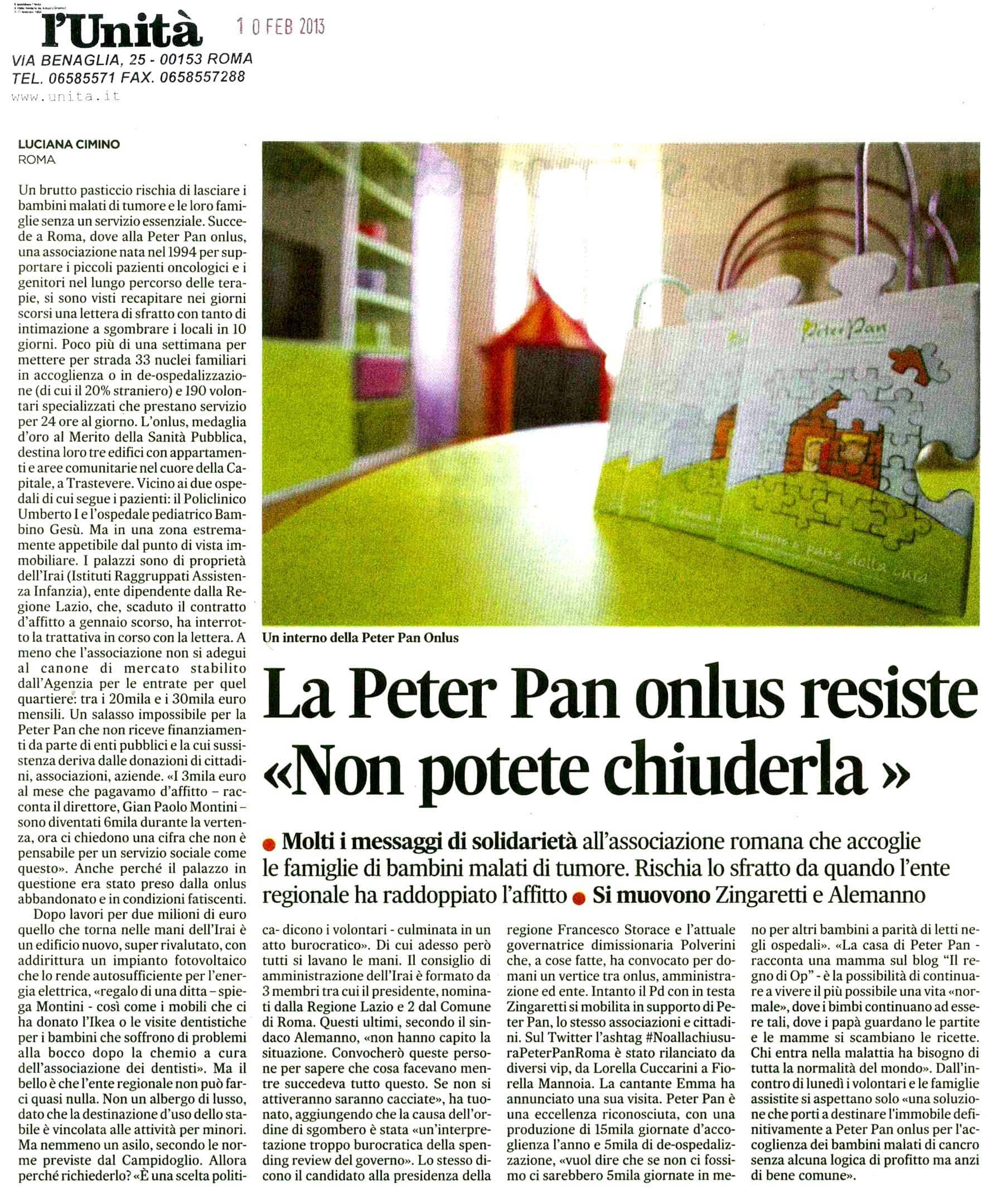 L’Unità “La Peter Pan onlus resiste “Non potete chiuderla”