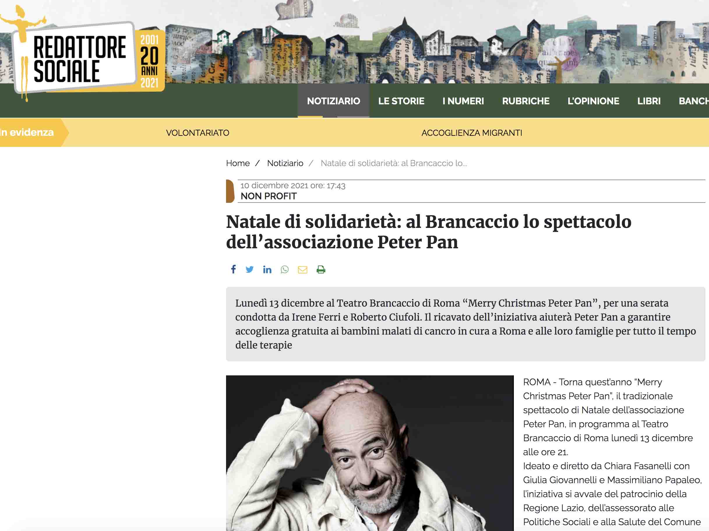 Articolo su “Redattore Sociale” dedicato al “Merry Christmas Peter Pan” il nostro spettacolo di Natale al Teatro Brancaccio di Roma del 13 dicembre.