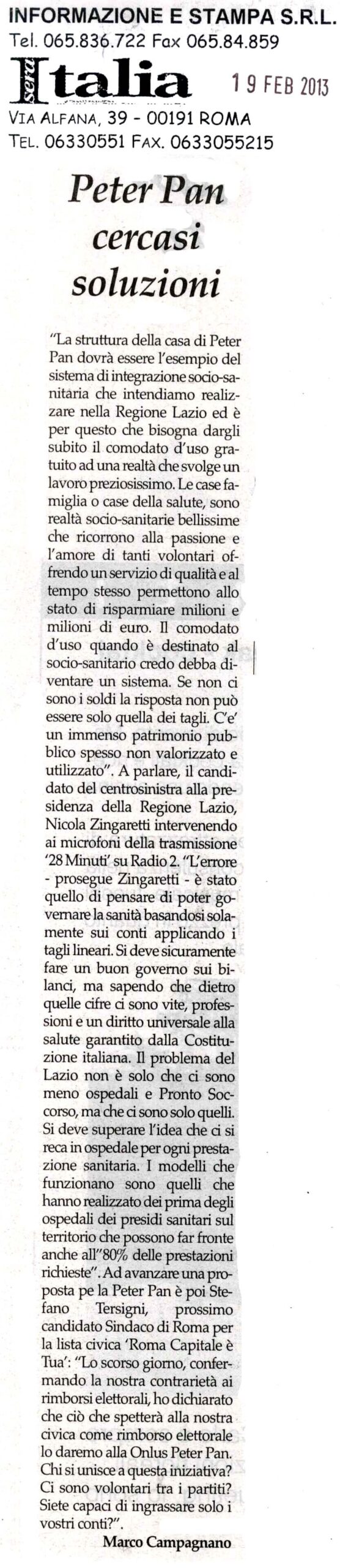 Peter Pan cercasi soluzioni
