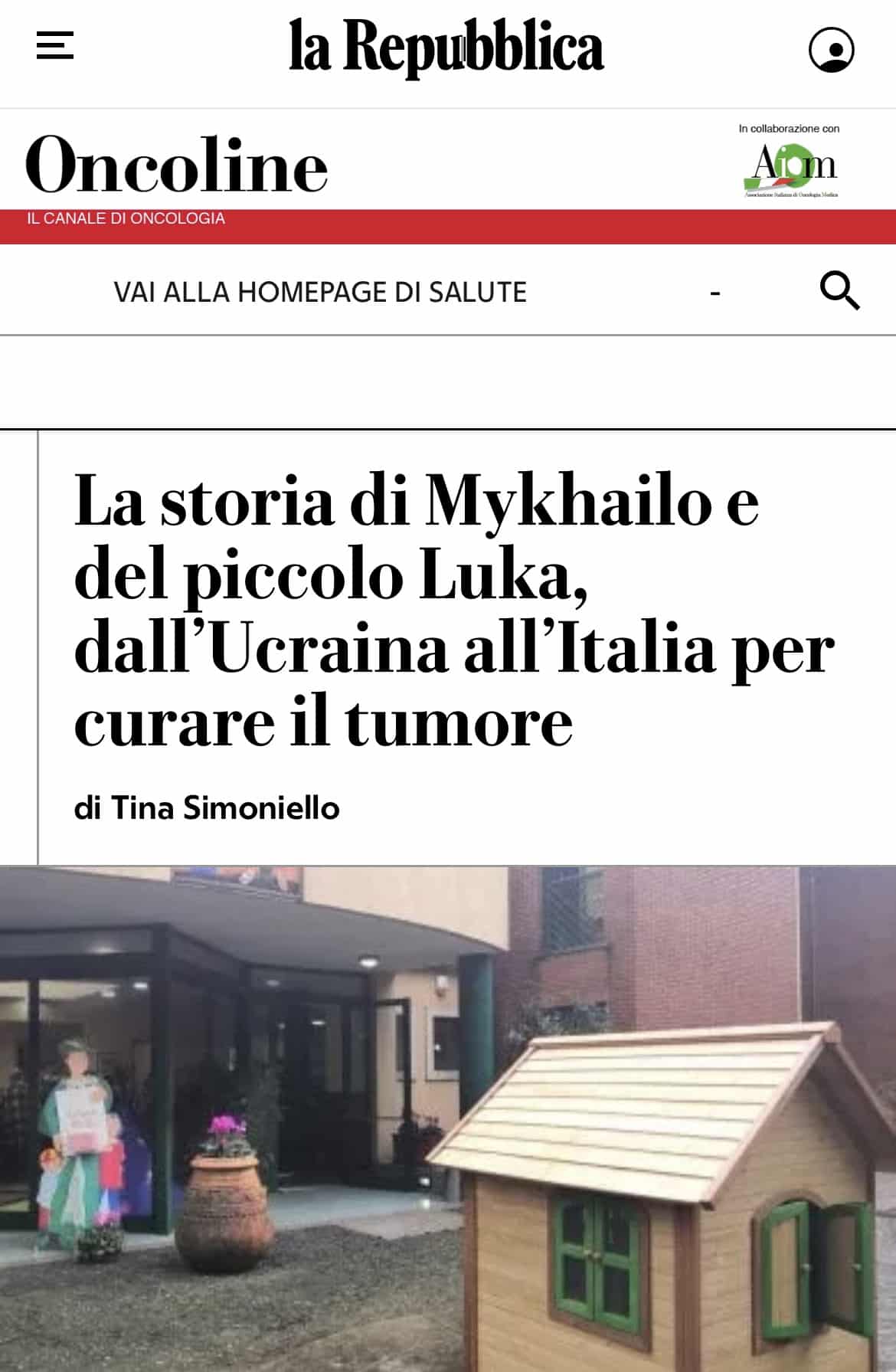 L’articolo di Tina Simoniello su Repubblica Salute dedicato ad una delle famiglie ucraine ospiti di Peter Pan. Un papĆ malato, il bombardamento dell’ospedale dove il figlio malato di cancro si curava a Donetsk e un lungo viaggio in macchina fino a Roma.
