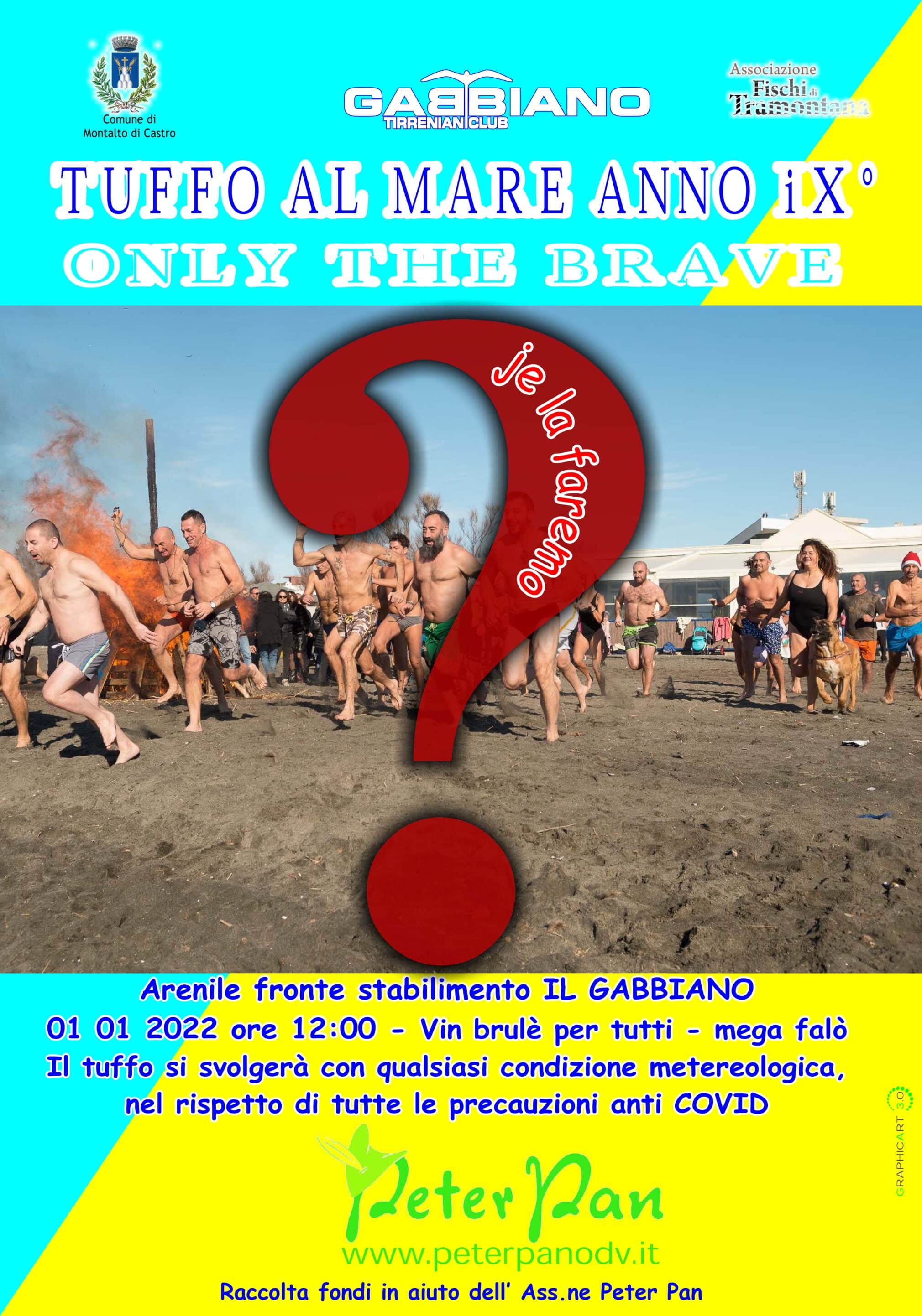 Un primo gennaio speciale e solidale a Moltalto di Castro. Alle ore 12.00 del 1 gennaio 2022, presso l’arenile dello stabilimento “Il Gabbiano”, è stato organizzato un tuffo in mare collettivo per raccogliere donazioni a favore dei bambini malati di cancro ospiti della Grane Casa di Peter Pan. Lo stabilimento “Il Gabbiano” si trova a Montalto di Castro presso il Lungomare Harmine, 64.